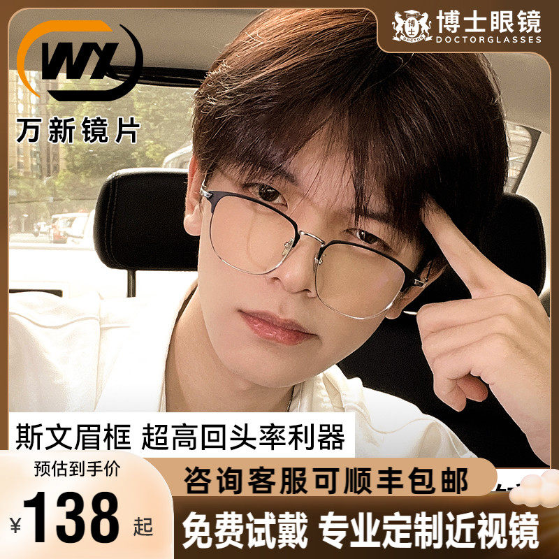 依视路旗下万新斯文理工眉线眼镜框男款超轻镜框镜架防蓝光眼睛框