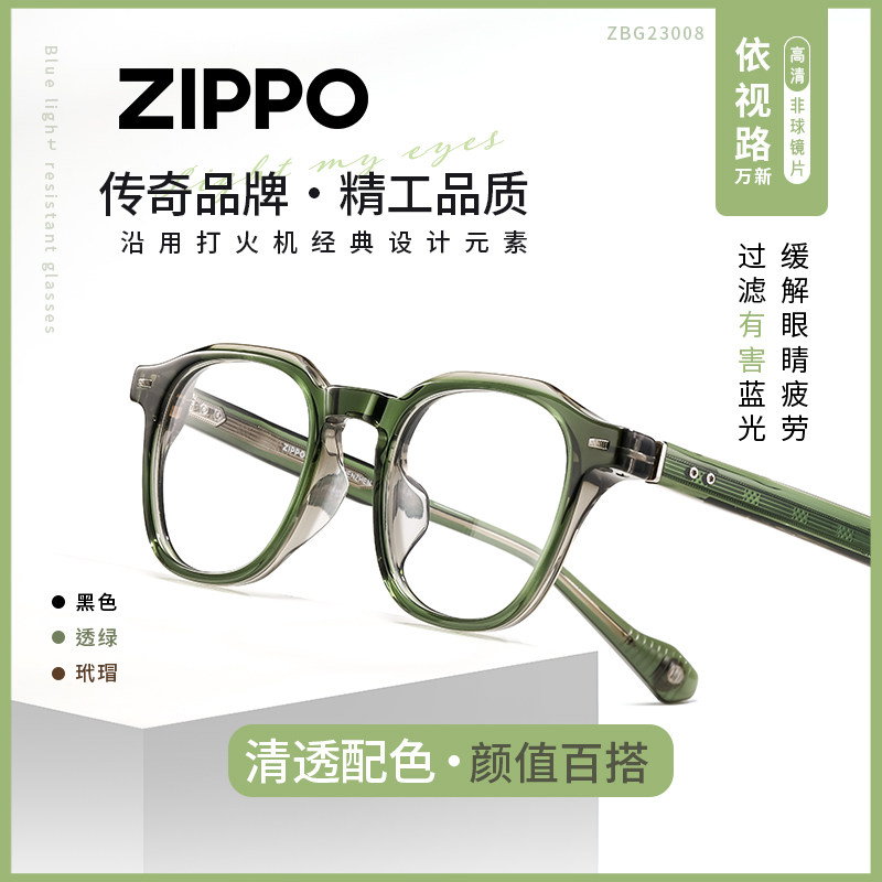 Zippo近视眼镜框配万新防蓝光镜片时尚超清素颜护目大框ZBG23010