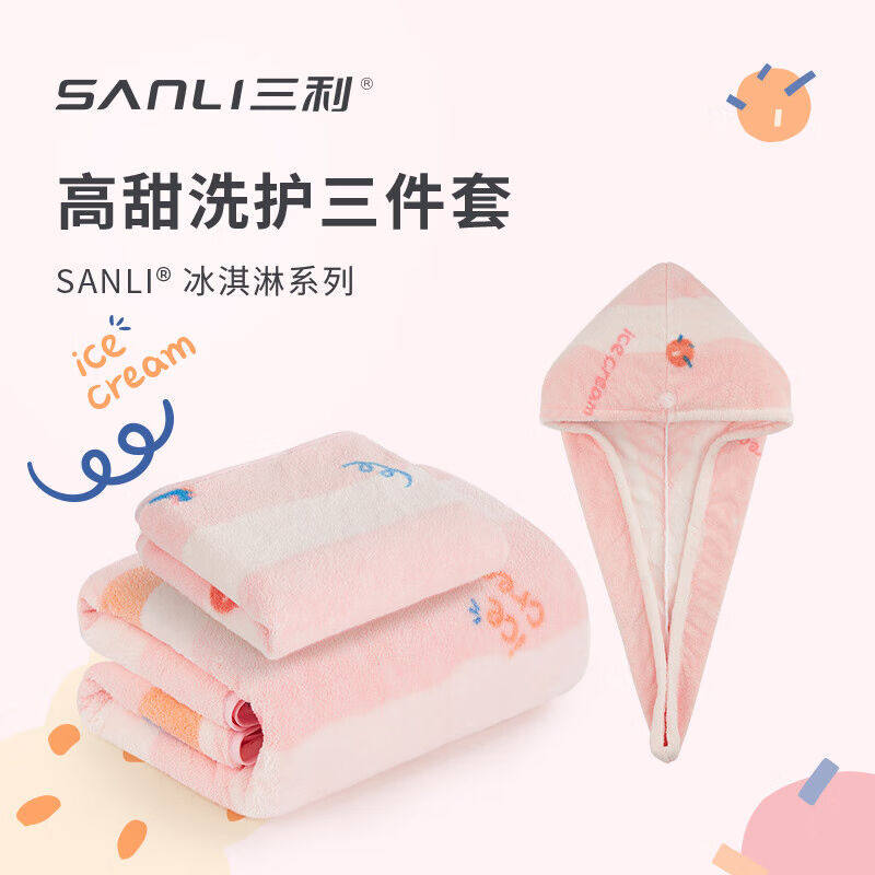 三利A类浴巾可爱女家用成人吸水裹巾速干可爱毛巾浴巾干发帽三件
