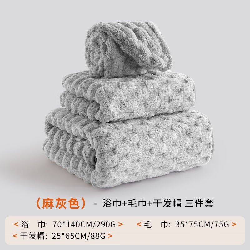 干发帽浴巾毛巾三件套三利女比全棉吸水速干2023新款家用大人裹巾