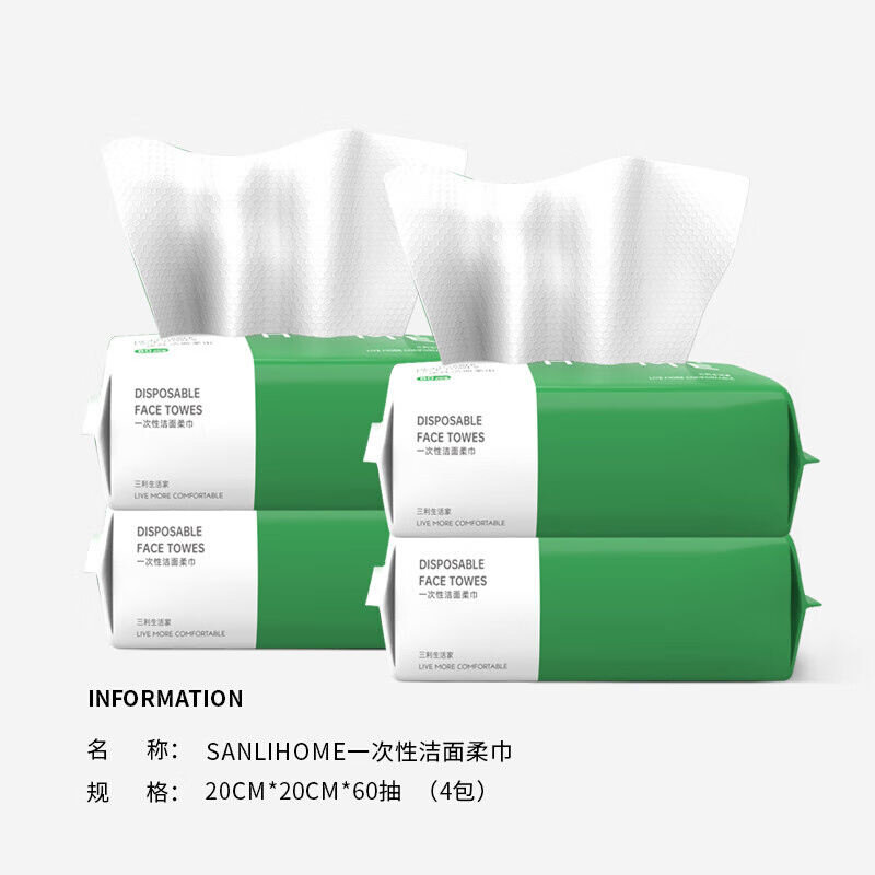 三利(SANLI)三利一次性洗脸巾A类柔软顺滑加大抽取便携洁面巾卸