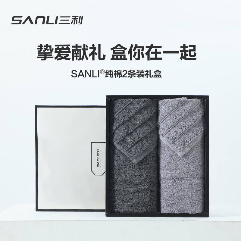 三利毛巾礼盒纯棉洗脸毛巾成人家用柔软面巾2条礼盒套装