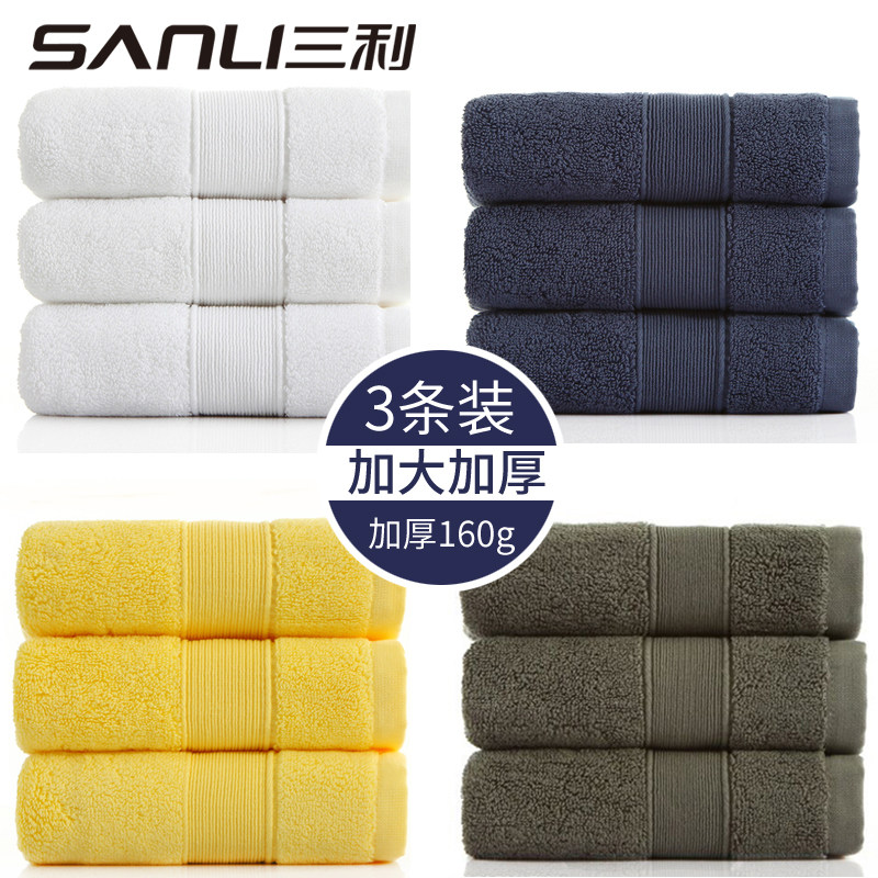 3条装 三利毛巾纯棉家用洗脸成人加厚情侣全棉柔软吸水洗澡大面巾