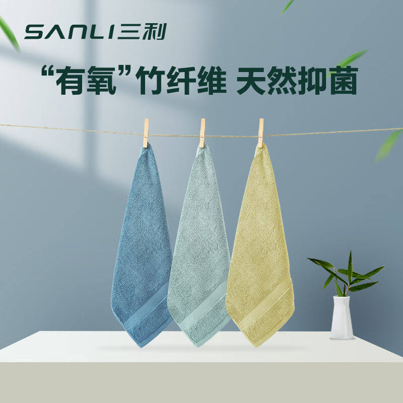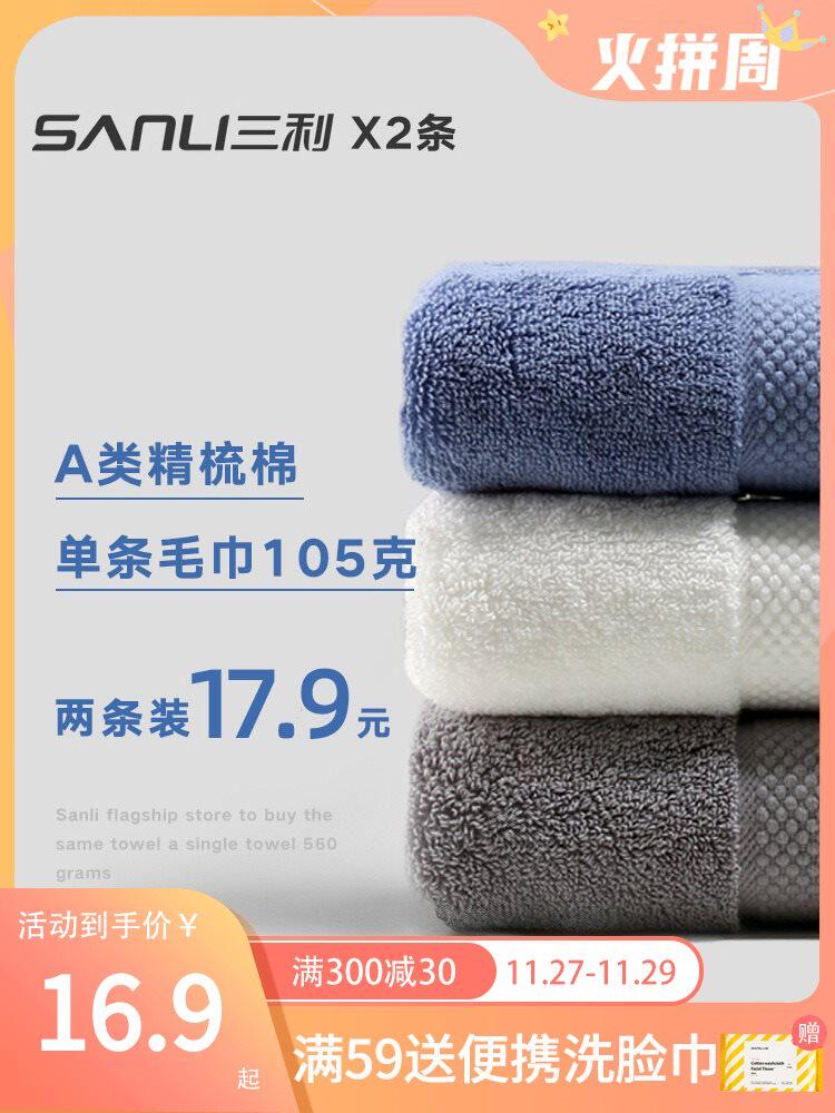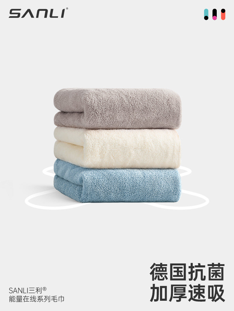 3条三利毛巾洗脸洗澡成人家用男女士抗菌比纯棉吸水擦头发速干厚