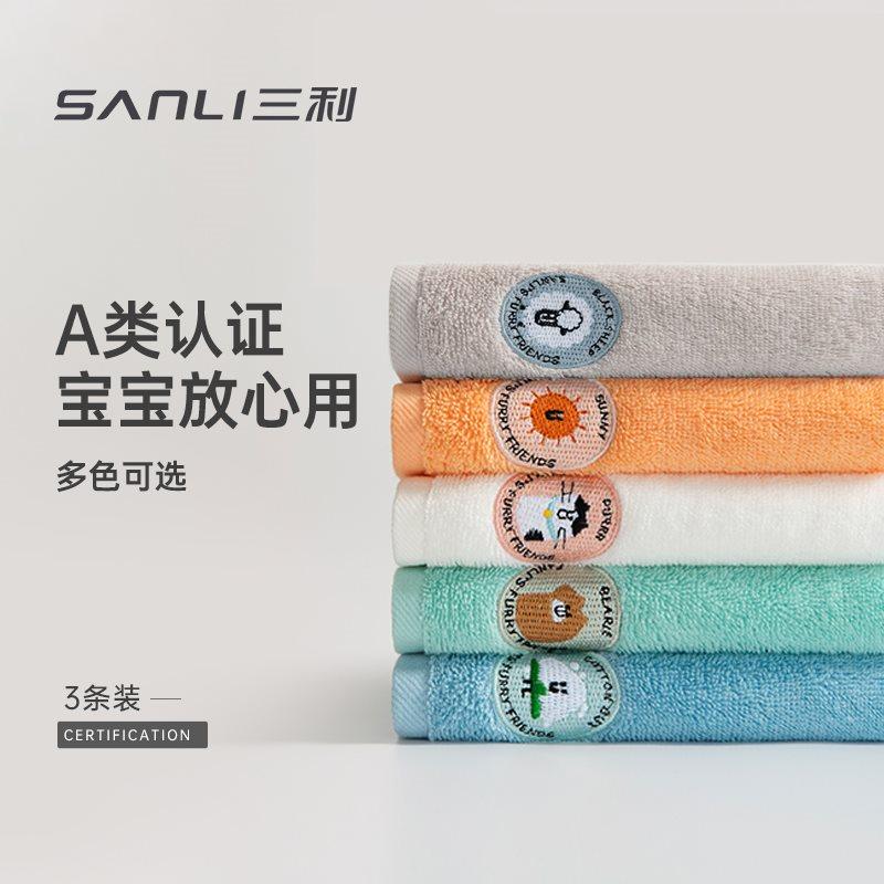 三利海绵宝宝毛巾纯棉洗脸家用成人不易掉毛柔软吸水男女加厚面巾