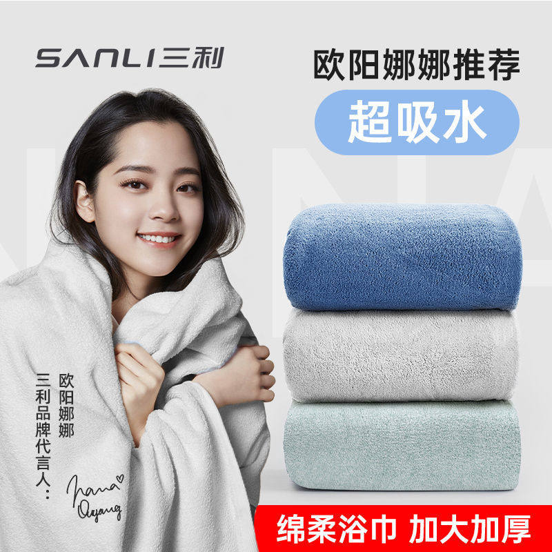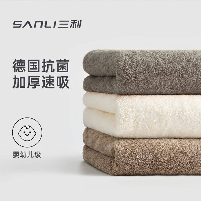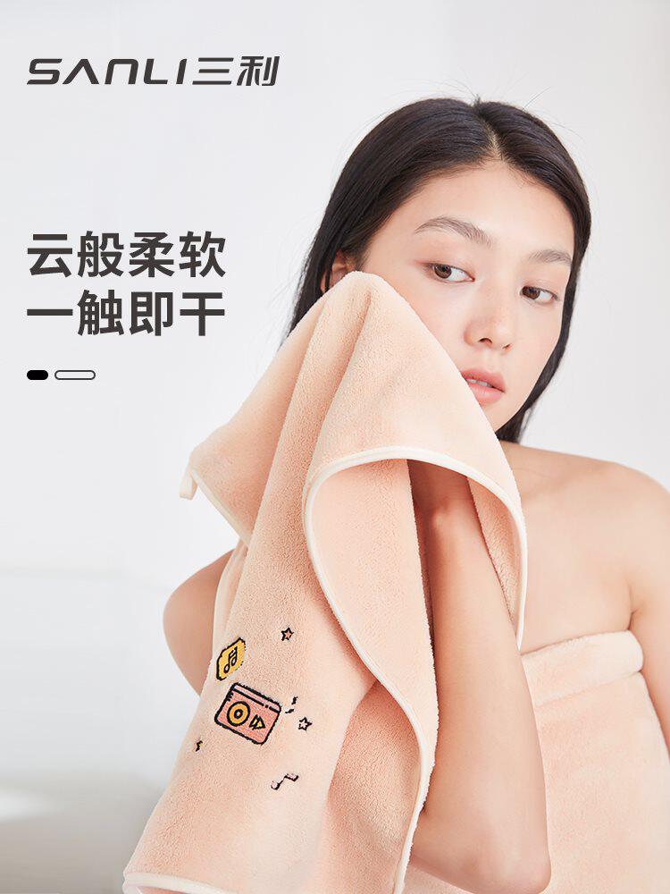 三利毛巾吸水不易掉毛男女洗脸洗澡家用干发比纯棉速干珊瑚绒抗菌