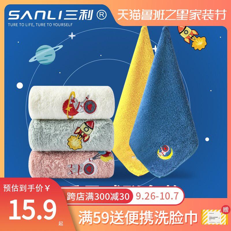 三利儿童毛巾全棉吸水洗脸洗澡家用柔软宝宝小毛巾可爱卡通长绒棉