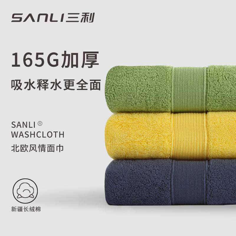 三利毛巾纯棉洗脸家用男女面巾吸水不易掉毛洗澡新疆长绒棉加厚