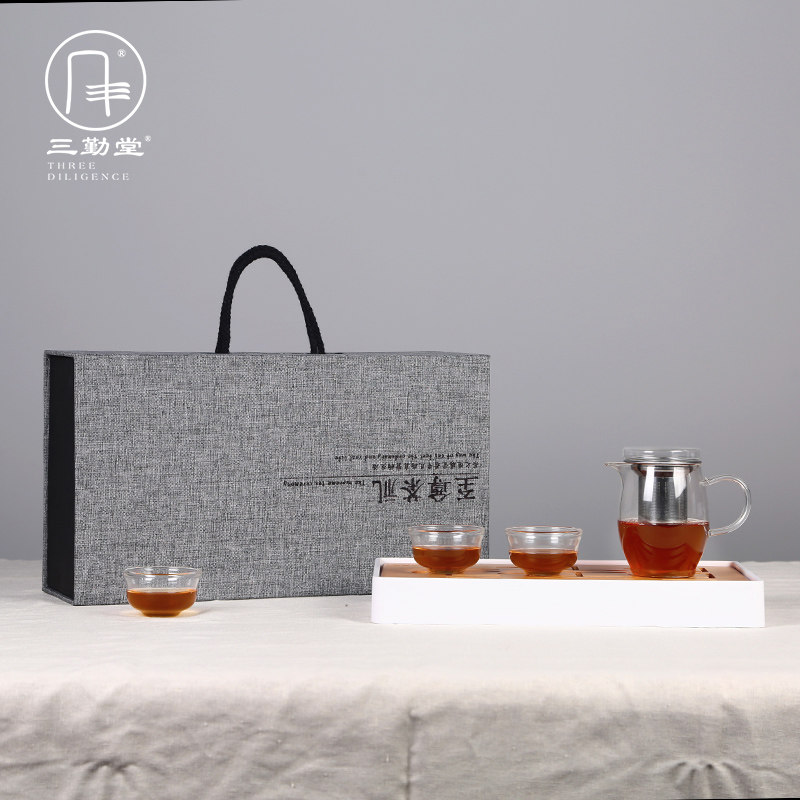 三勤堂玻璃功夫茶具 茶盘整套装一壶3杯带竹制储水式小托盘S91012