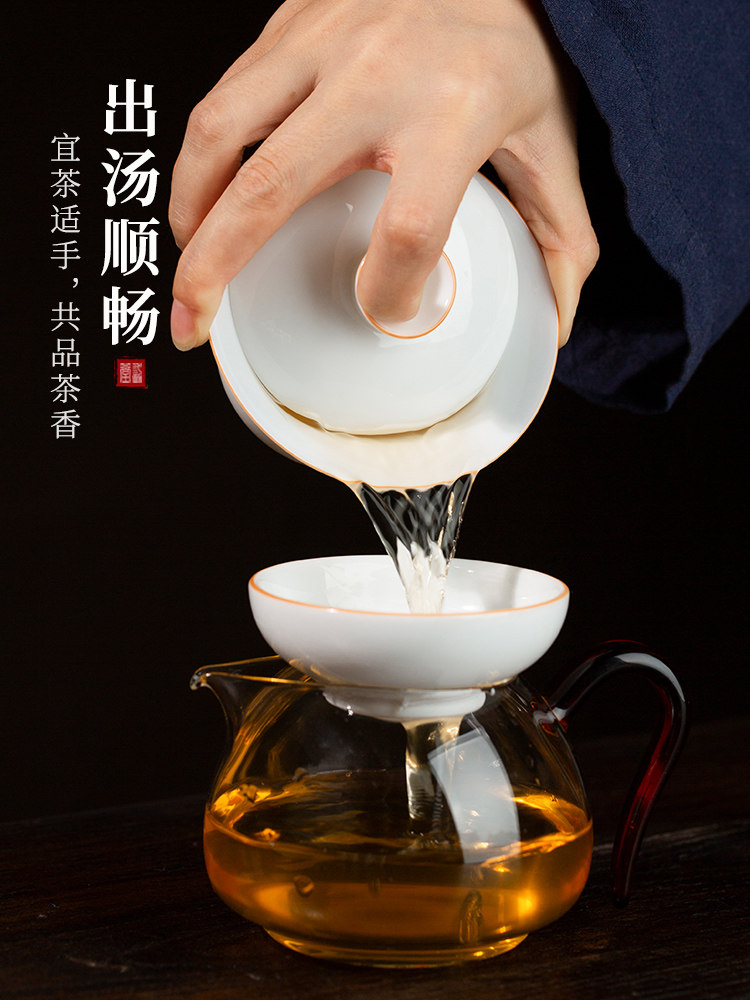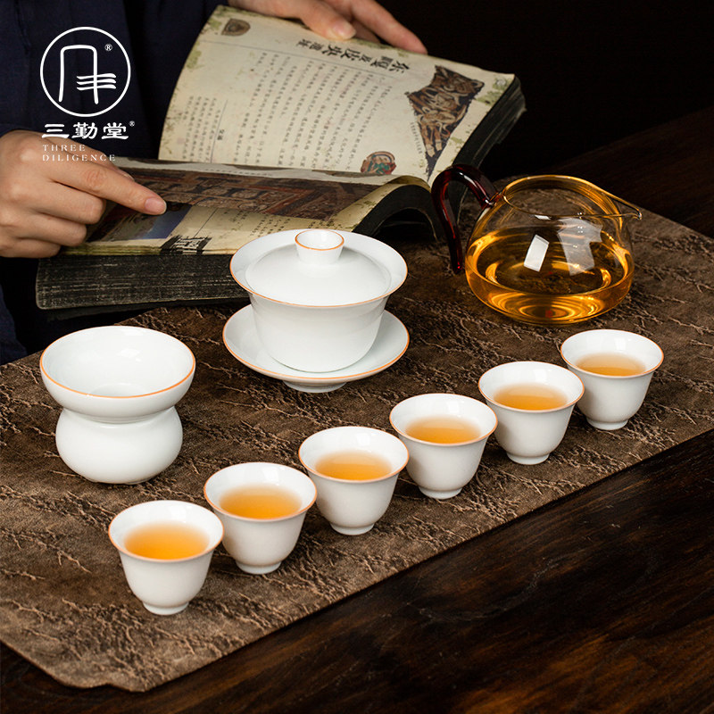 三勤堂白瓷整套家用茶具简约纯白盖碗家用玻璃公道杯套组礼盒套装