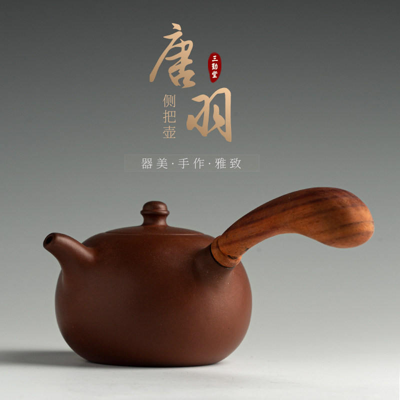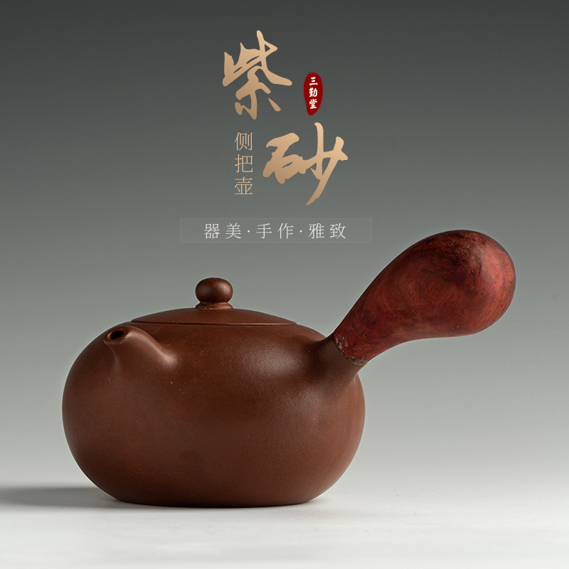 三勤堂紫砂壶家用功夫茶具泡茶器木柄侧把茶壶普洱茶白茶专用壶