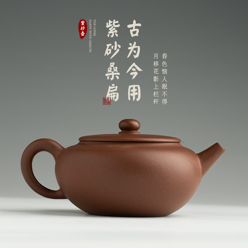 三勤堂仿古紫砂壶扁形带过滤宜兴原矿朱泥家用功夫茶具普洱茶茶壶