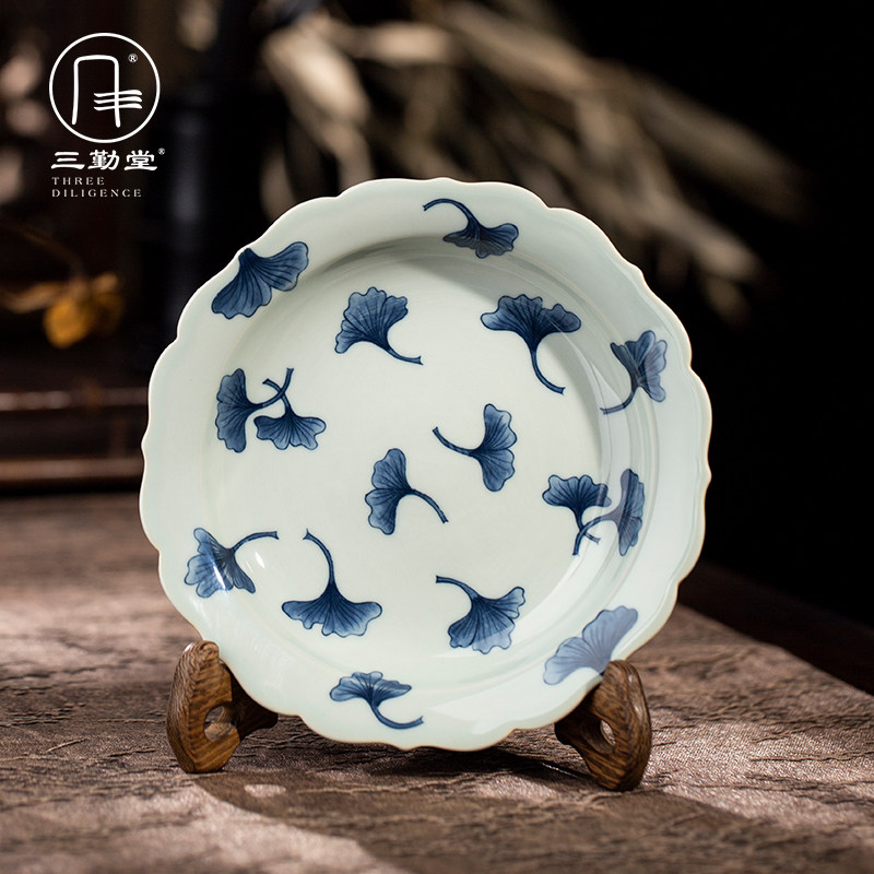 三勤堂手绘银杏叶壶承养紫砂茶壶景德镇青花大号茶点盘储水式茶台