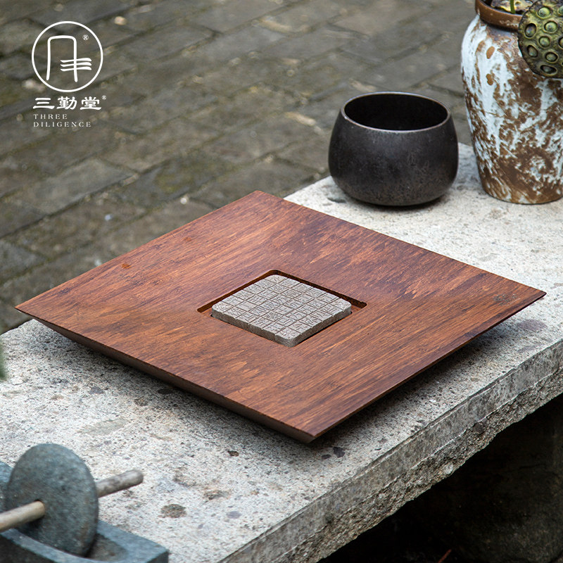 三勤堂方形木茶盘家用蓄水实木茶海百家姓紫砂壶承功夫茶具沥水盘