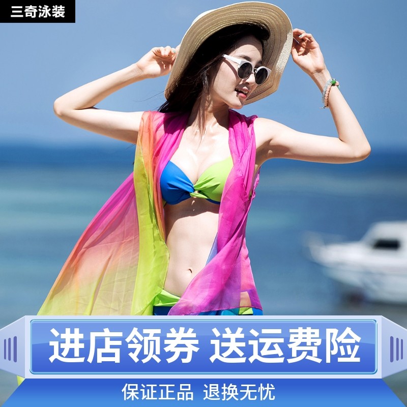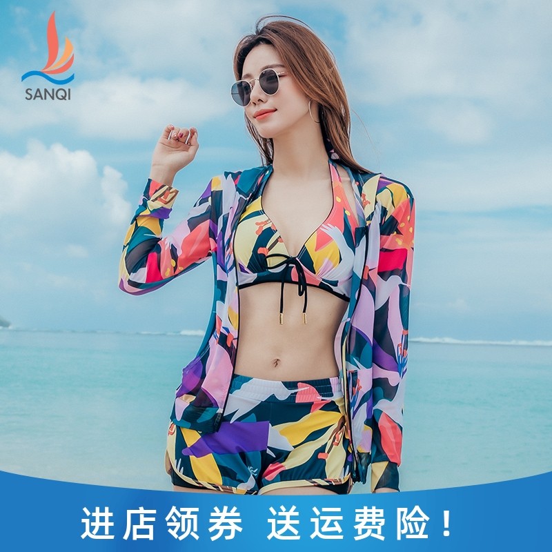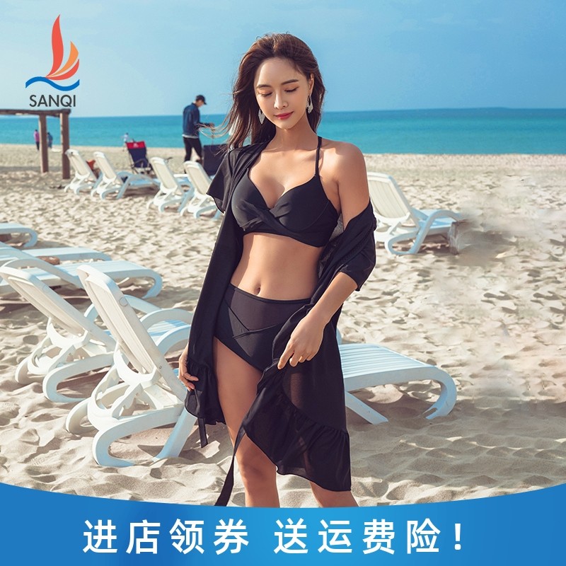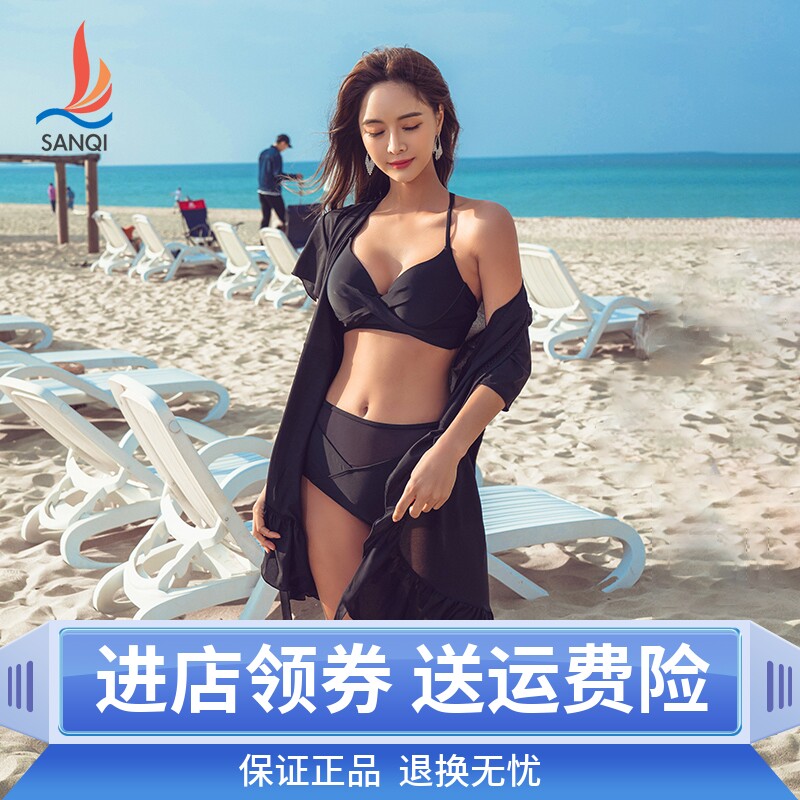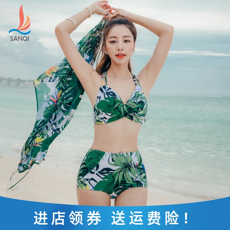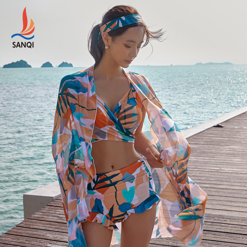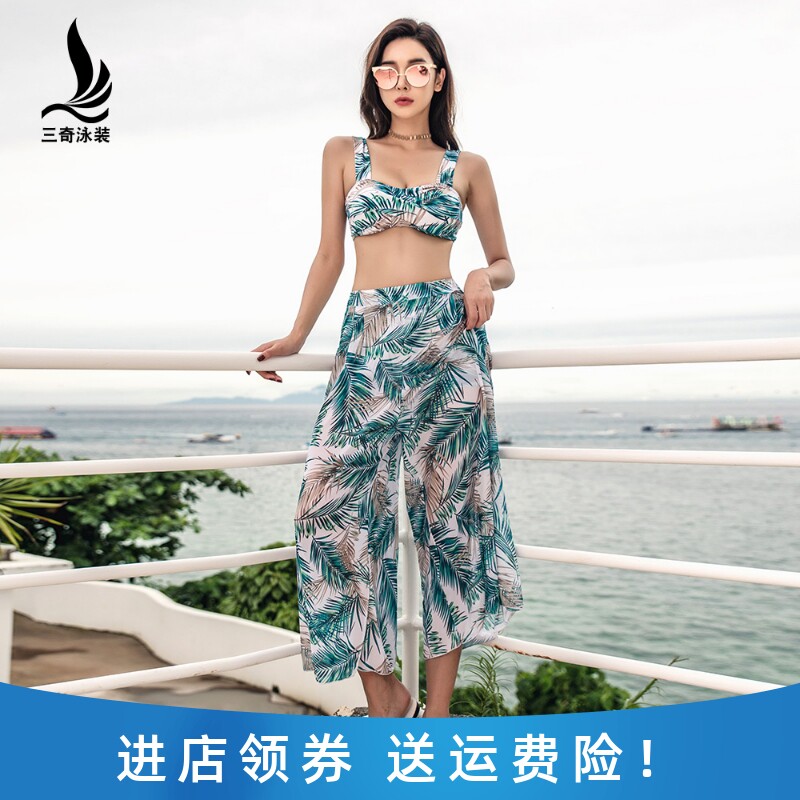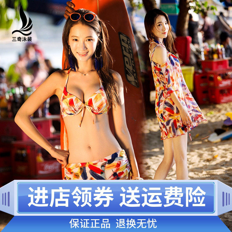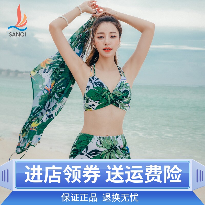 三奇性感分体泳衣女士新款泡温泉度假比基尼三件套遮肚显瘦游泳衣