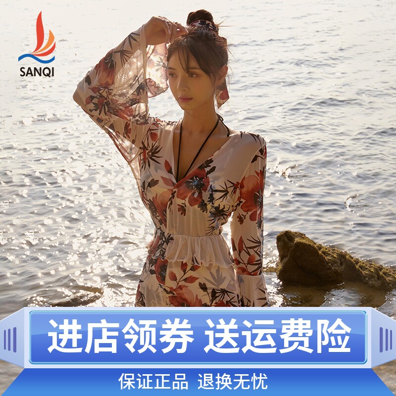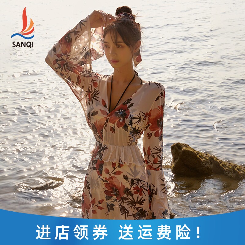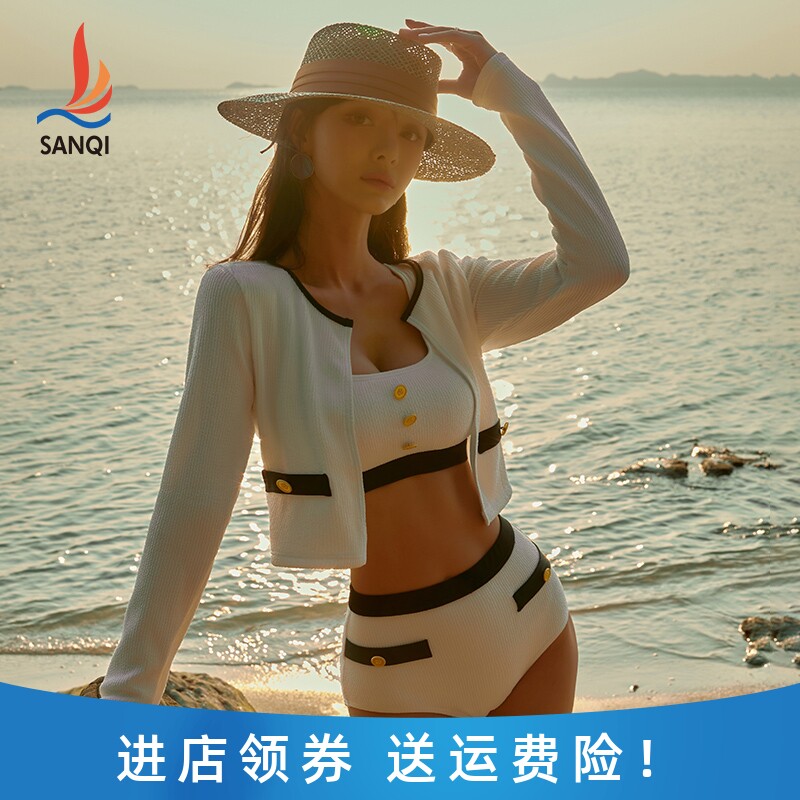 三奇防晒长袖罩衫分体泳衣三件套2023新品高级感度假比基尼游泳衣