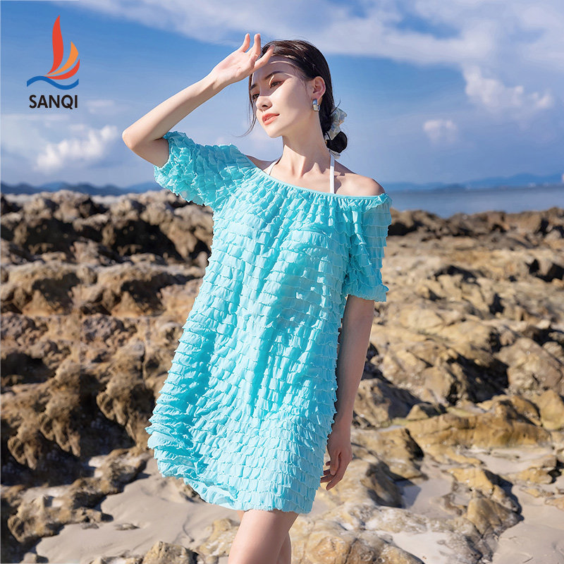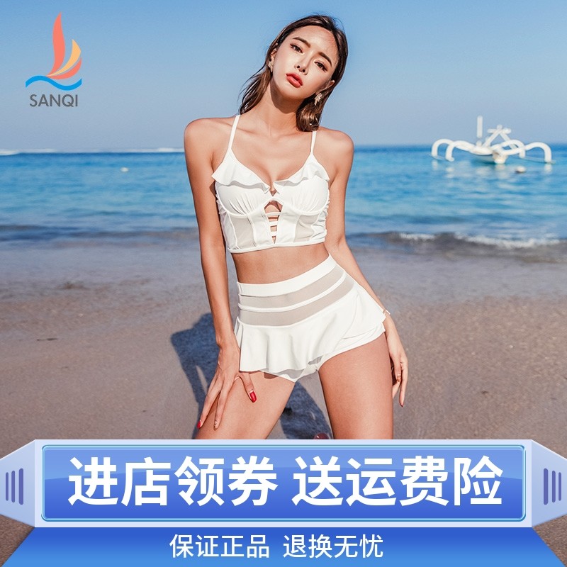 三奇泳衣女士分体裙式性感比基尼罩衫三件套韩国泡温泉度假游泳装