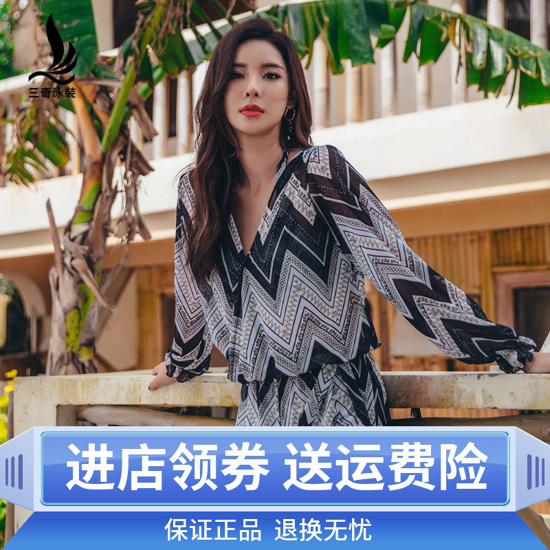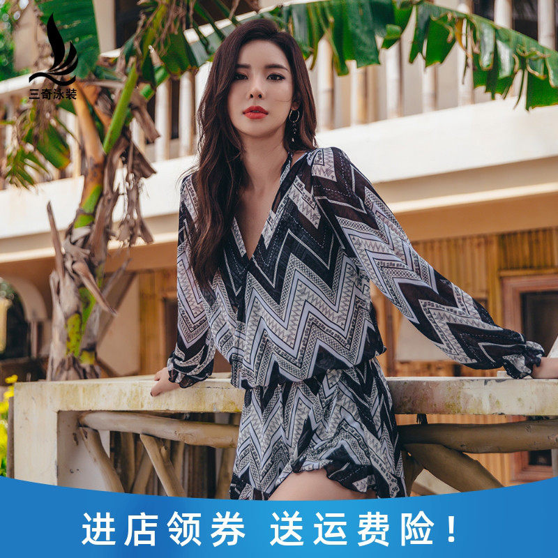 三奇泳衣夏仙气海边三件套女泡温泉长袖保守韩国比基尼显瘦游泳装