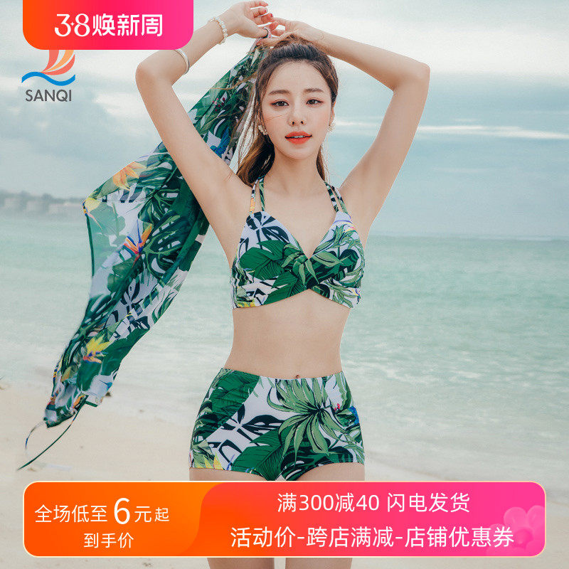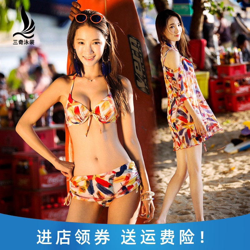 三奇游泳衣女比基尼三件套三点式韩国小胸聚拢钢托性感泡温泉泳装