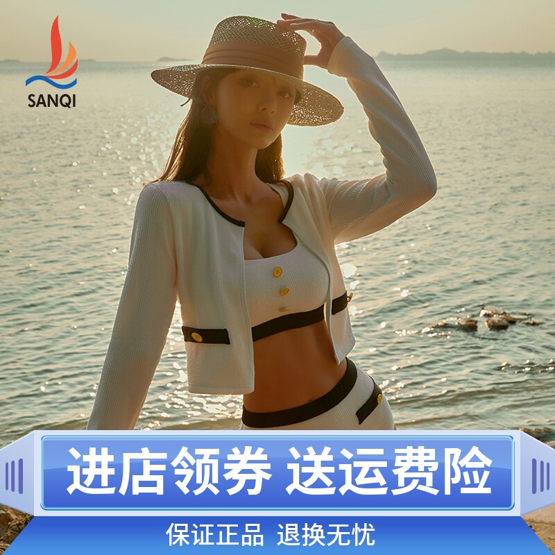三奇分体泳衣女2023新品长袖罩衫三件套温泉度假性感小香风比基尼