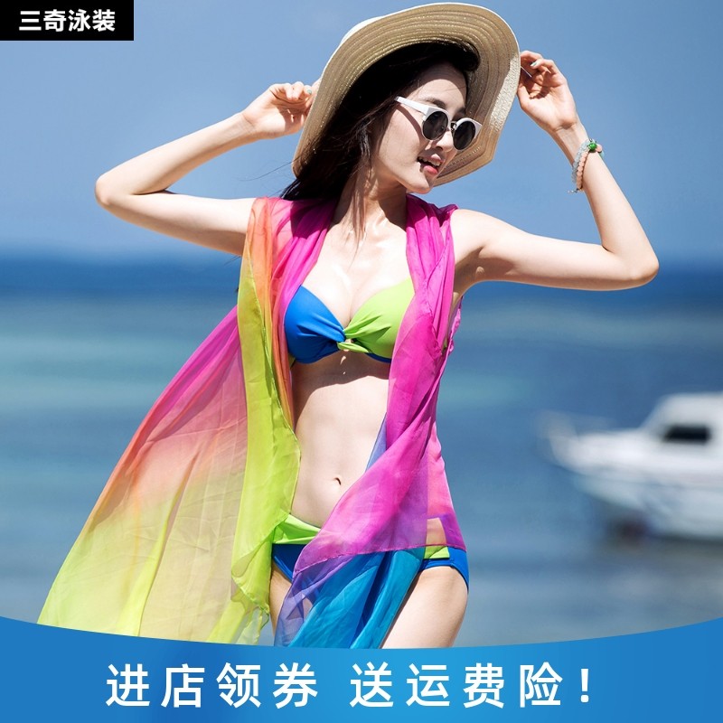 三奇泳衣女三件套夏海边仙气性感披纱罩衫比基尼bikini温泉游泳装