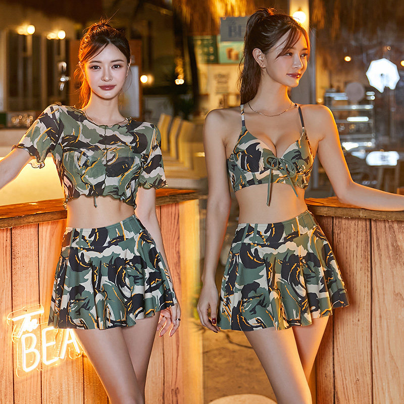 三奇2023新款性感分体泳衣女士迷彩色海边度假三件套游泳衣比基尼