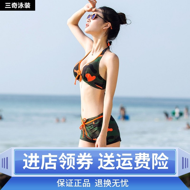 三奇品牌游泳衣女士分体比基尼大胸小胸聚拢性感运动大码温泉泳装