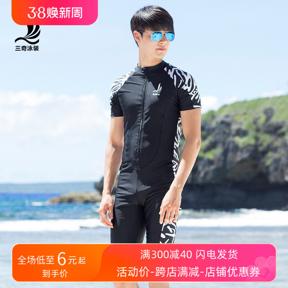 三奇连体男泳衣成人男士竞速男泳裤泳装深潜湿式潜水服长腿泳裤