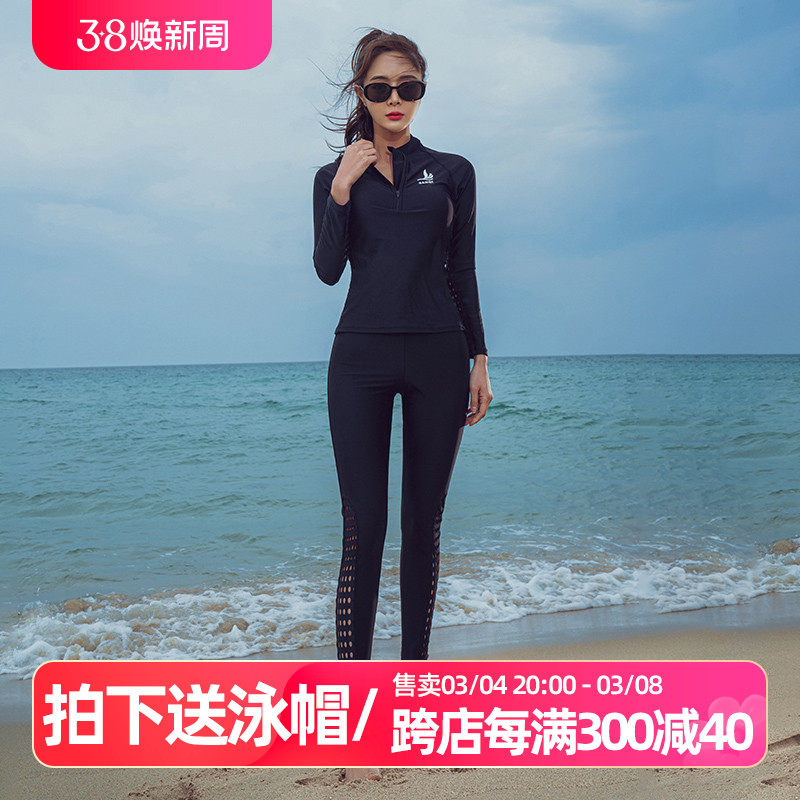 新款三奇长裤连体游泳衣紧身速干长袖潜水服弹力女士水母套装泳装