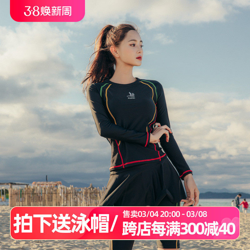 三奇游泳衣女分体式保守长袖两三件套运动训练速干潜水浮潜冲浪服