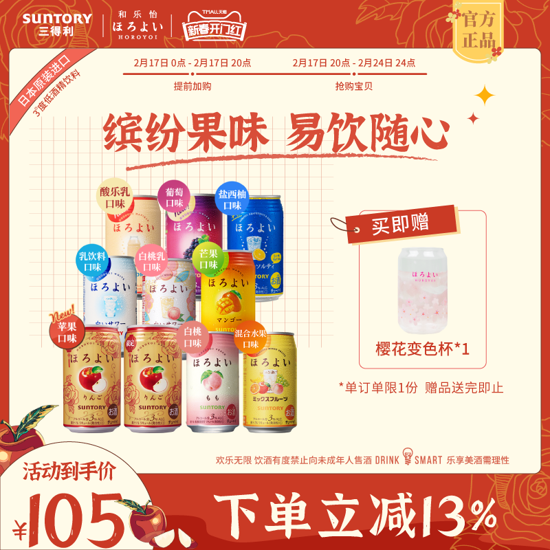 三得利和乐怡气泡果酒微酒感网红女士低度预调鸡尾酒果酒缤纷8罐
