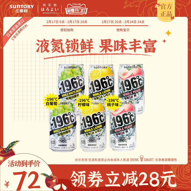 三得利-196℃预调鸡尾酒柠檬桃子味白葡萄味微酒感果酒350ml*6罐
