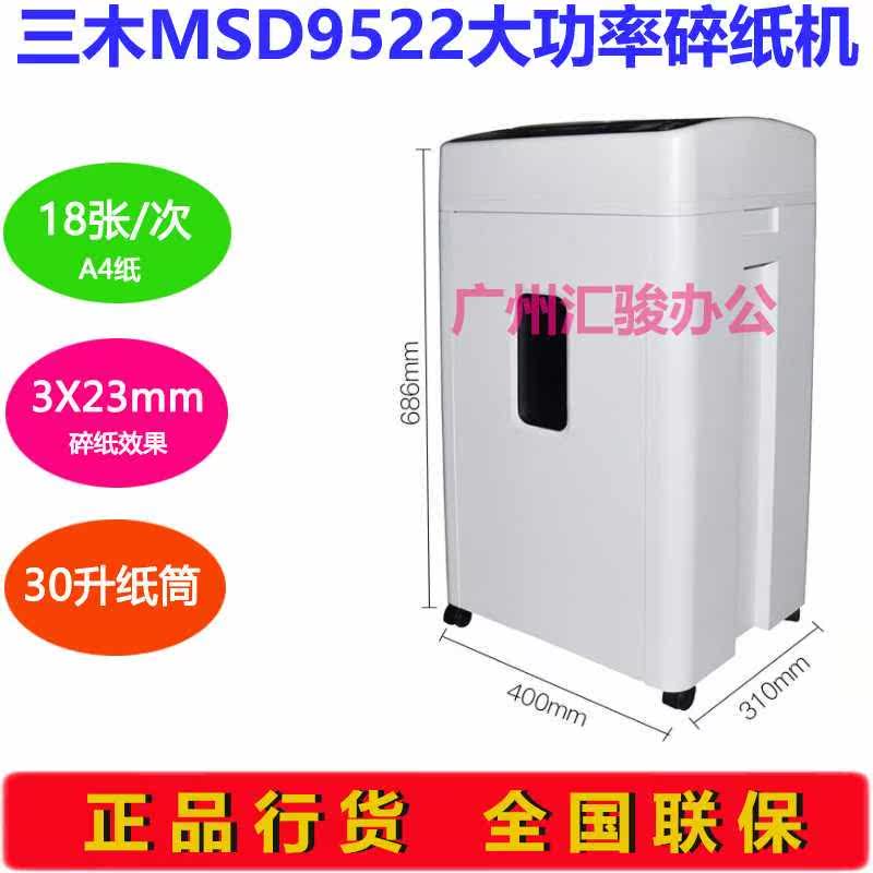 三木MSD952锰钢侠系列碎纸机4级保密单次18张持续45分钟30L碎光盘