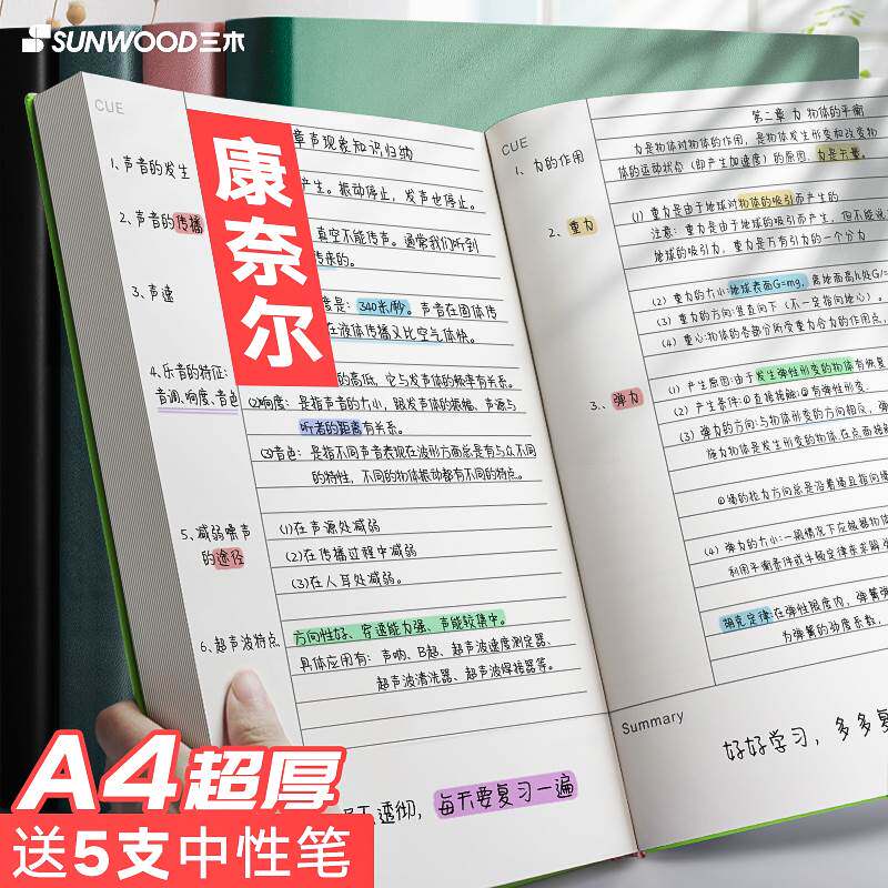三木a4康奈尔笔记本大本子5r记忆法横线版大学生考研备考复习学习记录记事本超厚加厚软皮简约课堂做笔记专用