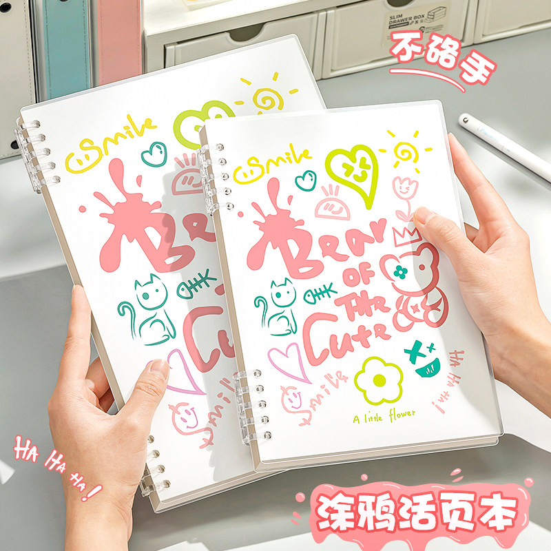 涂鸦渐变活页笔记本本子b5活页本a5可拆卸夹扣环不硌手线圈本初中高中生专用高颜值考研大学生错题记事日记本