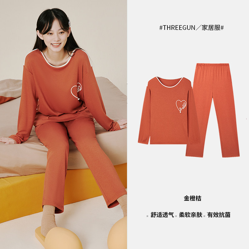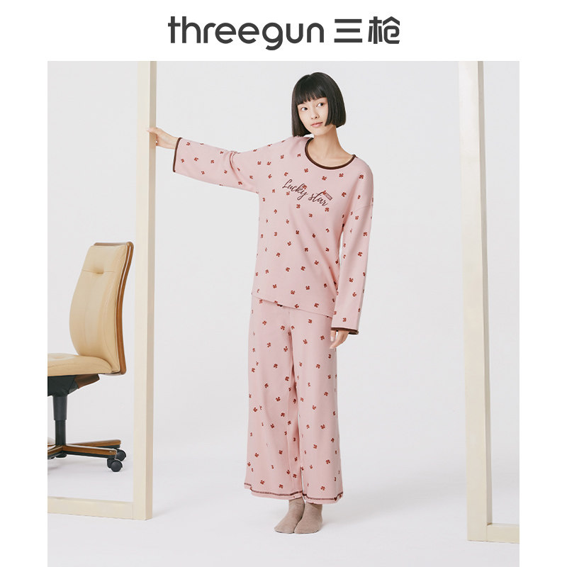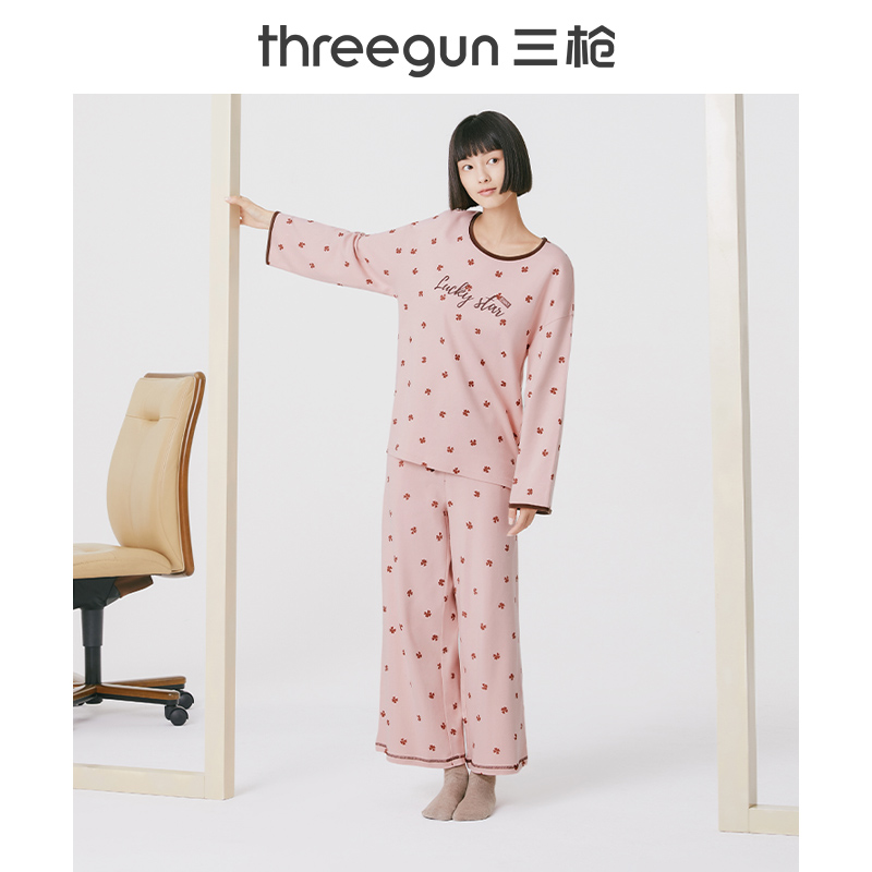 三枪家居服女士秋冬纯棉休闲柔软亲肤睡衣睡裤套装长袖长裤起居服