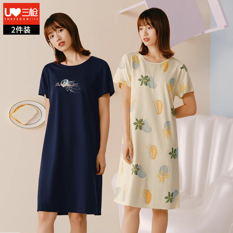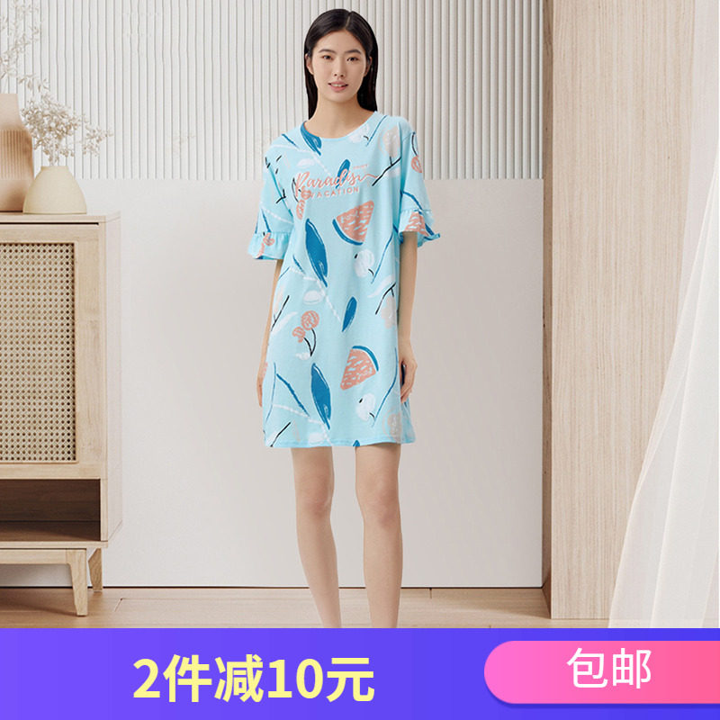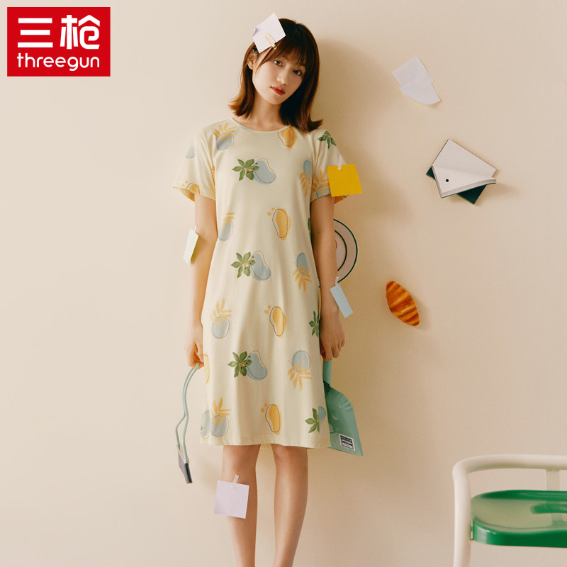 三枪睡衣女睡裙短袖新款夏天纯棉居家全棉可外穿家居服女士裙子