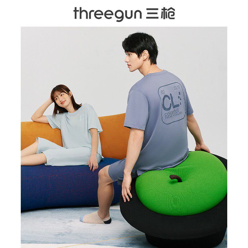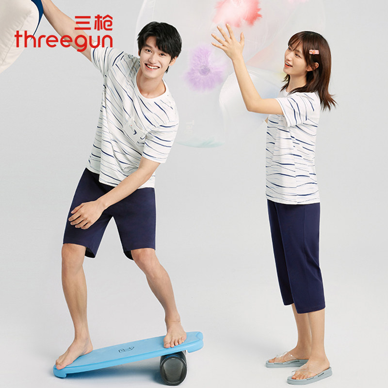 三枪家居服套装男士夏季速干舒感棉圆领短袖短裤女士睡衣情侣款