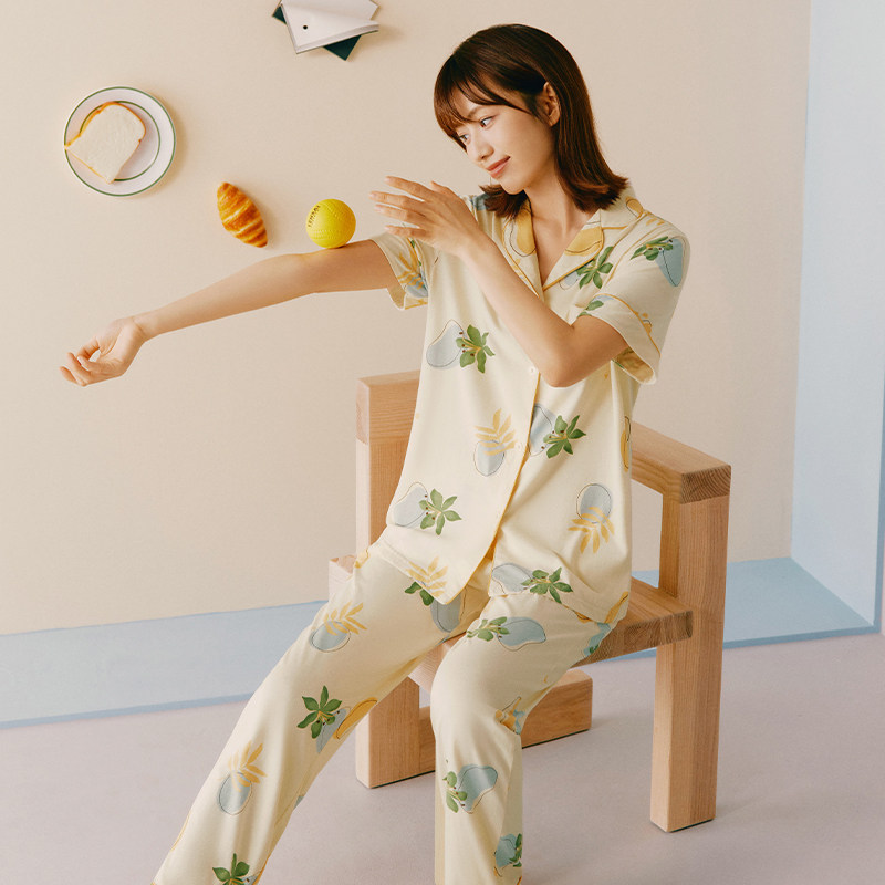 三枪女士家居套夏季纯棉水柔棉甜美印花轻薄透气高级感女睡衣套装
