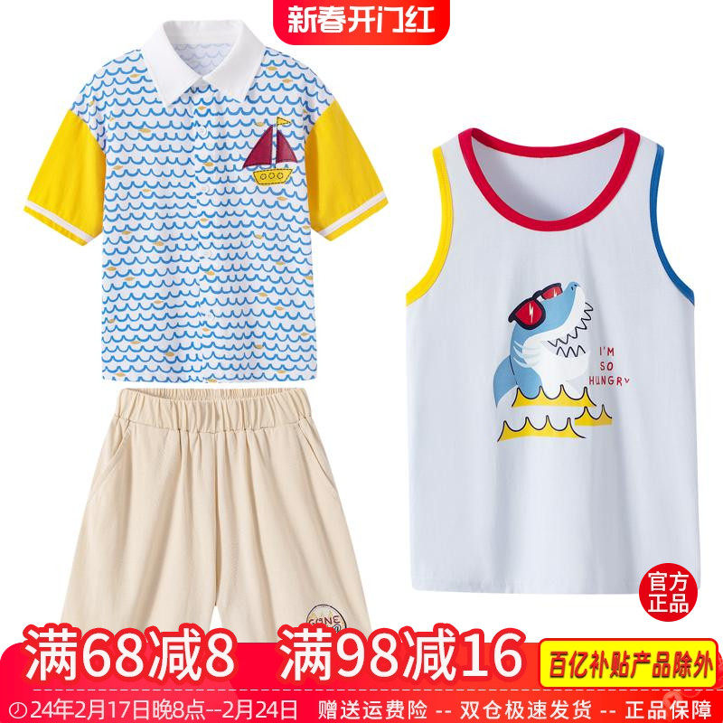 【3件套】三枪儿童夏季薄款纯棉短袖短裤背心可爱帅气140小童套装