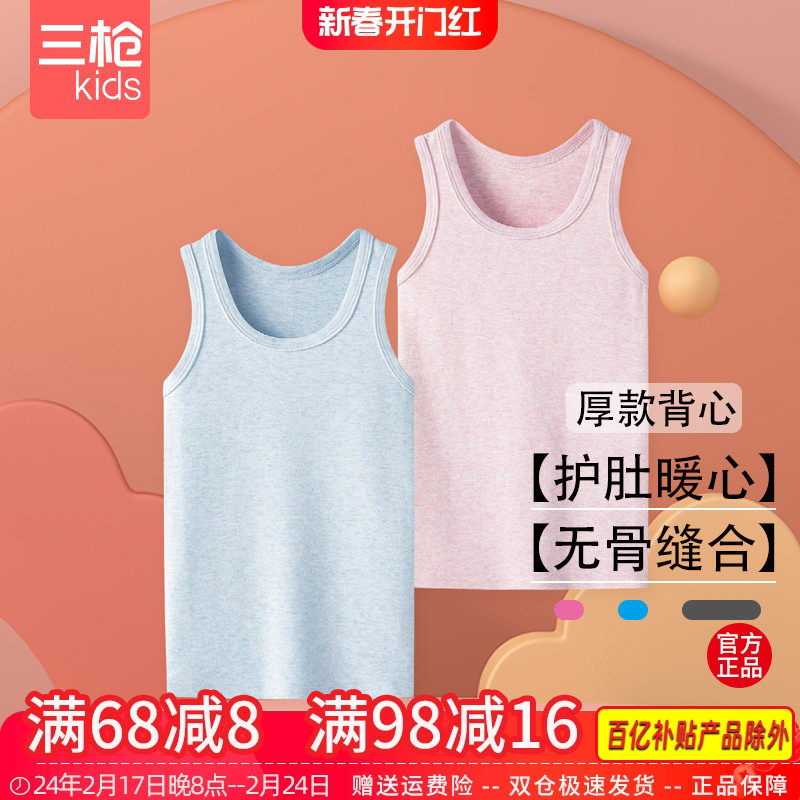 三枪儿童色纺秋护肚亲肤学生厚纯棉粉男女童小孩A类柔软保暖背心