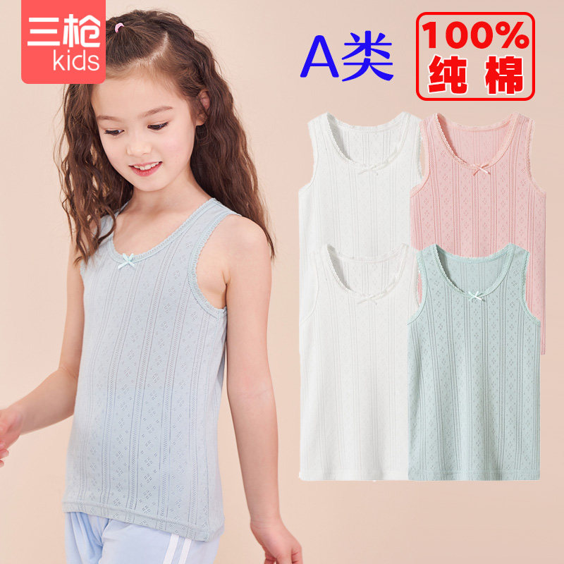 [2件装]三枪女童100%纯棉提花背心纯色A类中8大童学生家居小背心