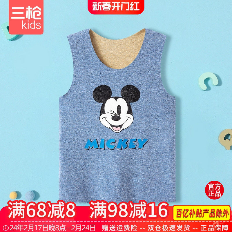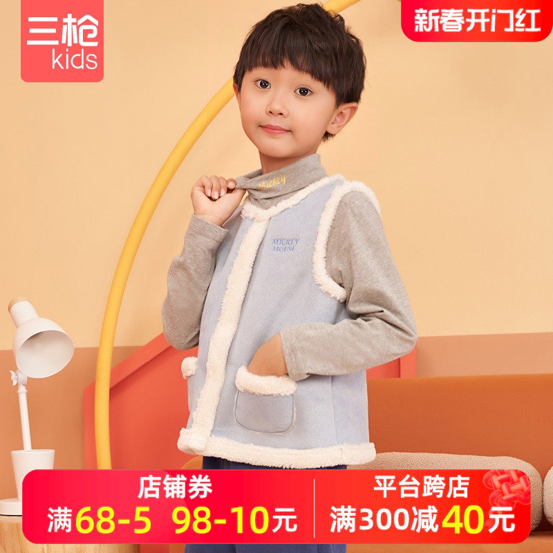 三枪秋冬少儿圆领加绒厚款保暖背心男生女童小宝宝外穿打底绒背心