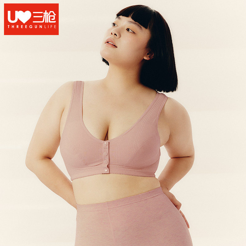 三枪文胸女纯棉前开扣哺乳无钢圈内衣背心式大胸显小大码胖MM胸罩