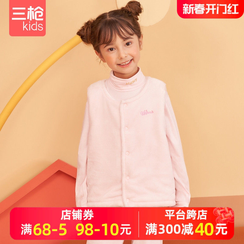 三枪儿童童装双色羊毛蚕丝暖绒男女小童宝宝无袖秋冬背心打底内穿