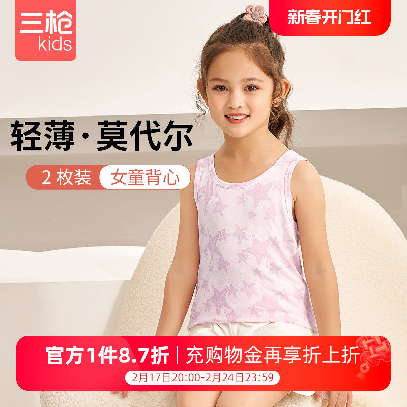 三枪儿童背心春夏新品莫代尔女孩薄款小背心女童打底内穿背心