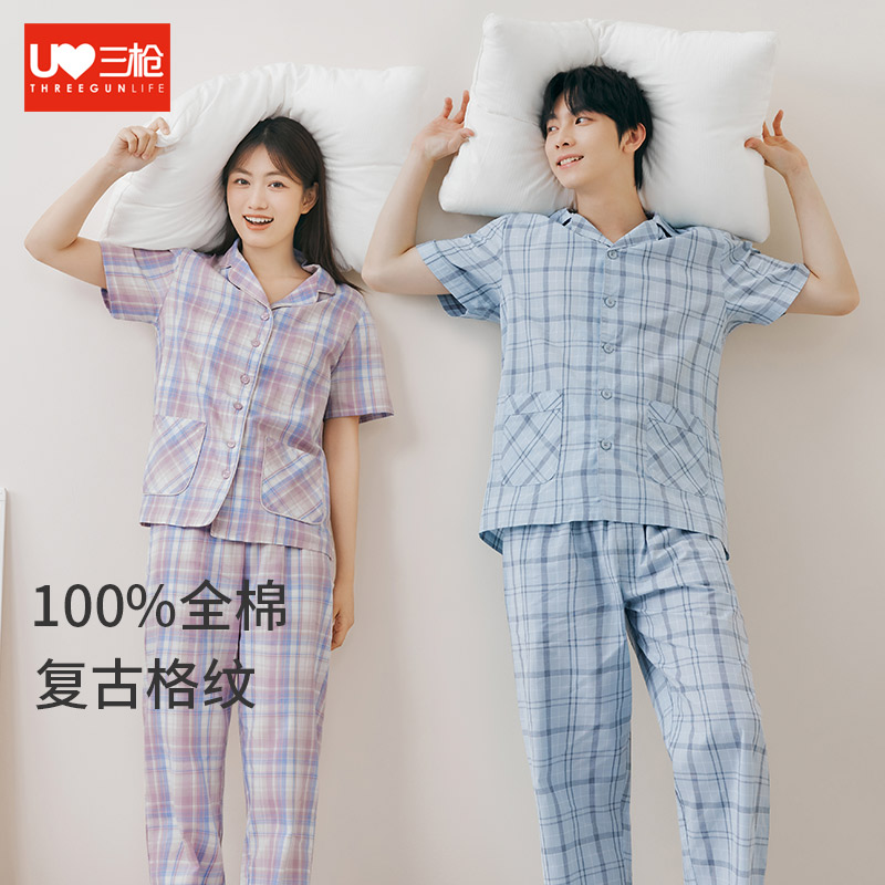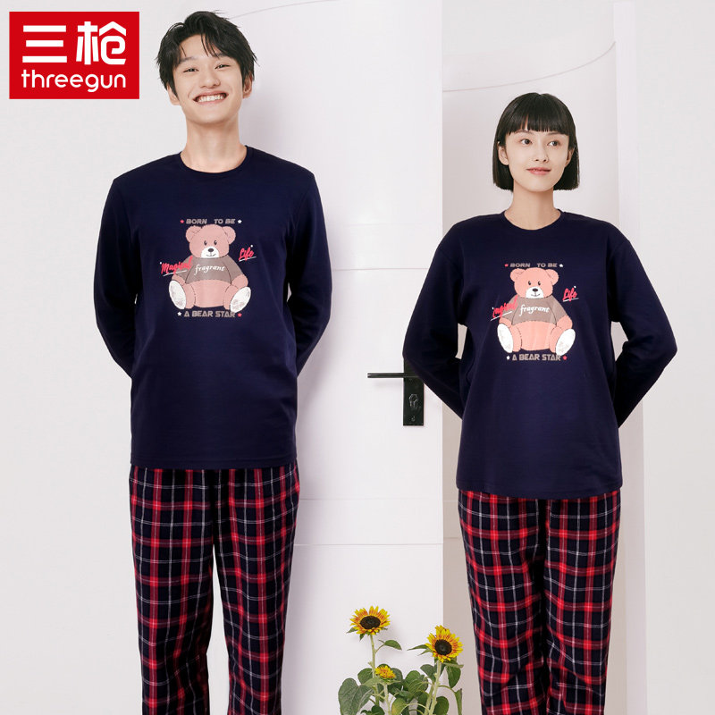 【抗静电】三枪纯棉睡衣男女春秋季全棉大码情侣可外穿家居服套装