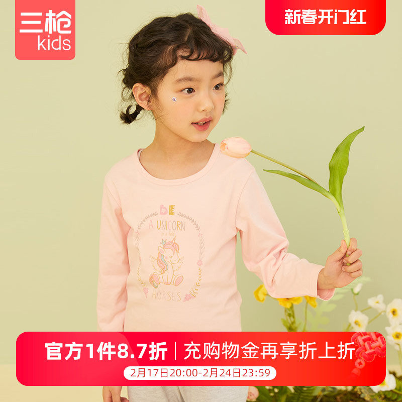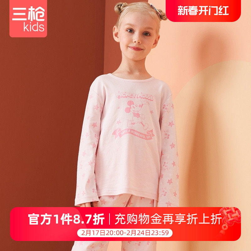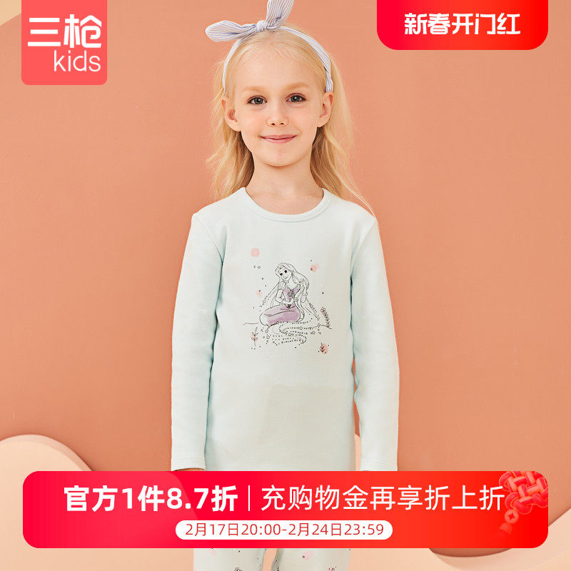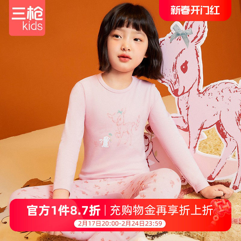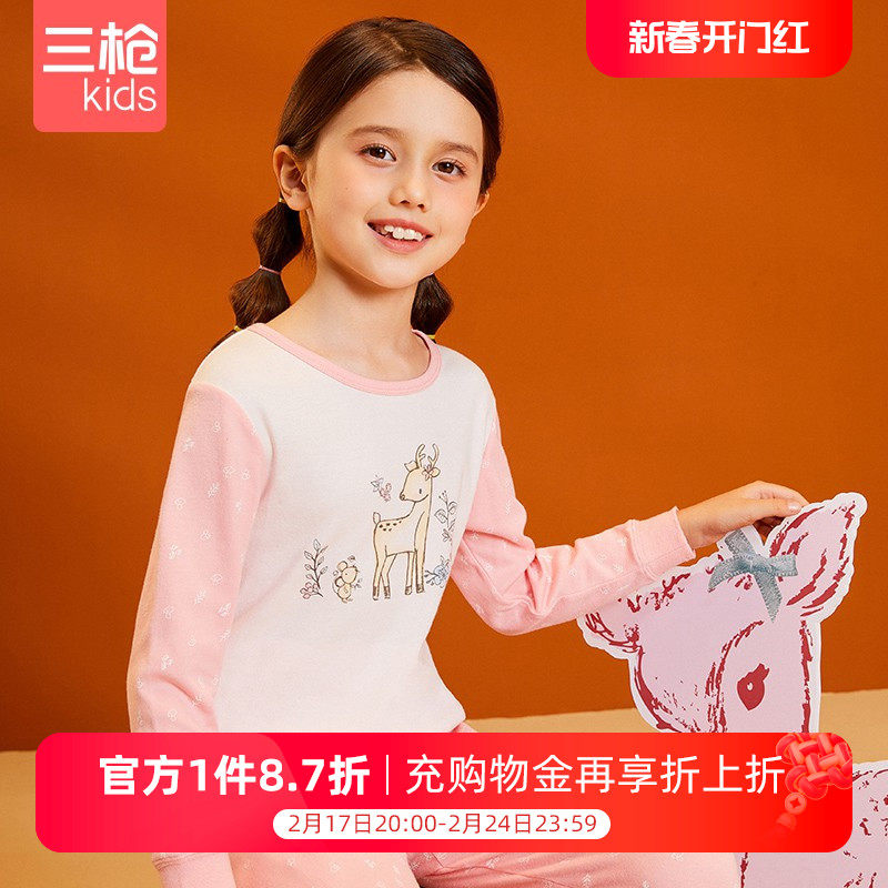 三枪儿童睡衣秋季内衣套女童圆领秋衣秋装纯棉打底保暖儿童内衣套