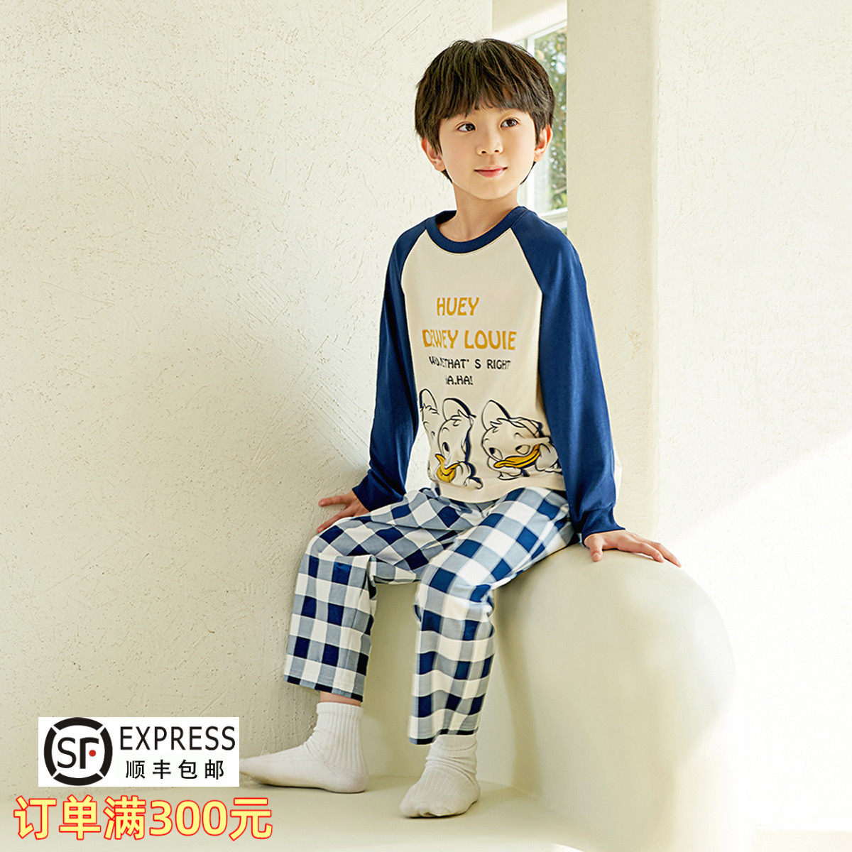 迪士尼水柔棉家居空调服薄春夏三枪内衣男童长袖长裤儿童睡衣套装