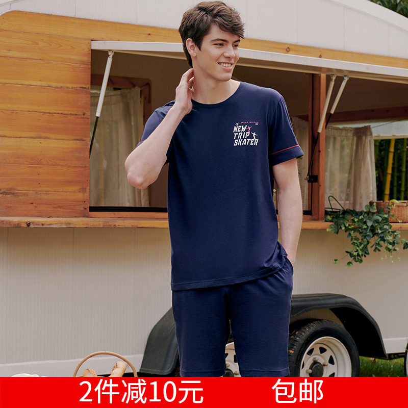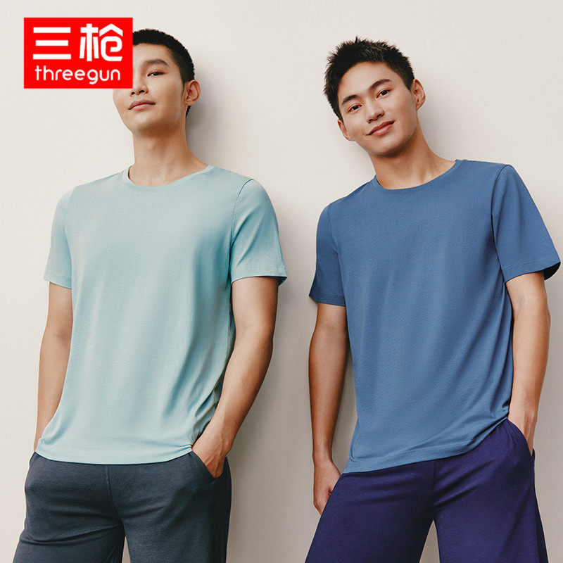 三枪家居套男春夏新品吸湿速干亲肤舒感棉质圆领男士睡衣套装